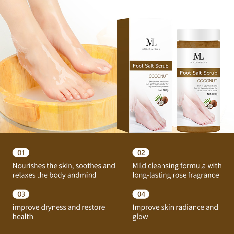 We can make different scents of the foot salt scrub: Lavender, Rose, Avocado, Chocolate, Vanilla, Aloe Vera, etc. Customized Service, Low MOQ,